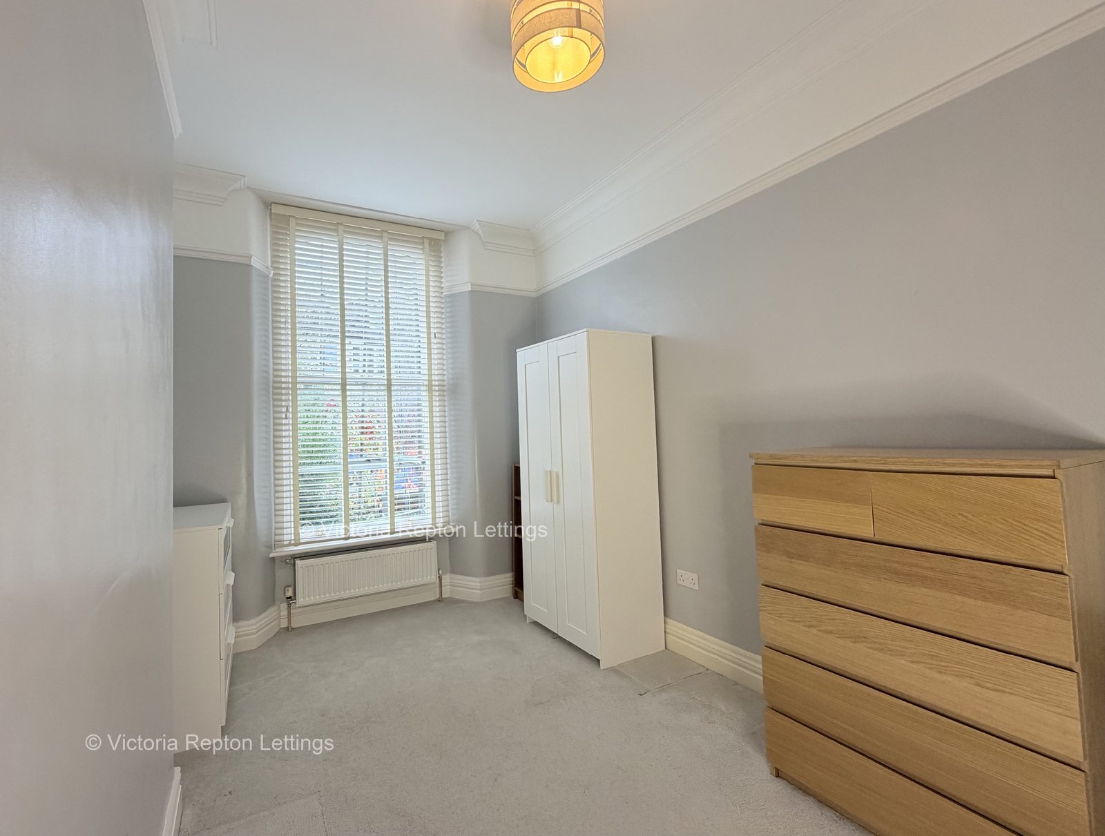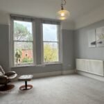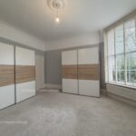 The principal bedroom is a generously proportioned double, distinguished by three full-length windows that flood the room with natural light.
